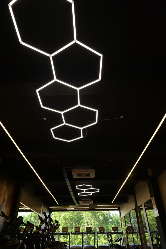 • Stretch Ceilings & Advanced Lighting: Custom stretch ceilings paired with targeted LED and ambient lighting create energizing, spacious atmospheres – vital for fitness centers where mood and visibility matter.